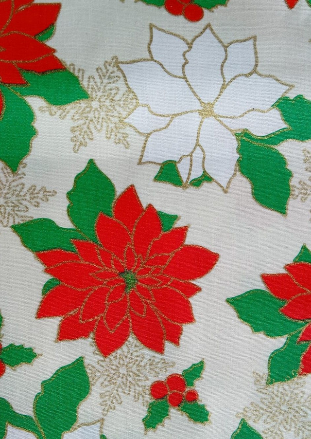 Stof: wit kerstbloemen